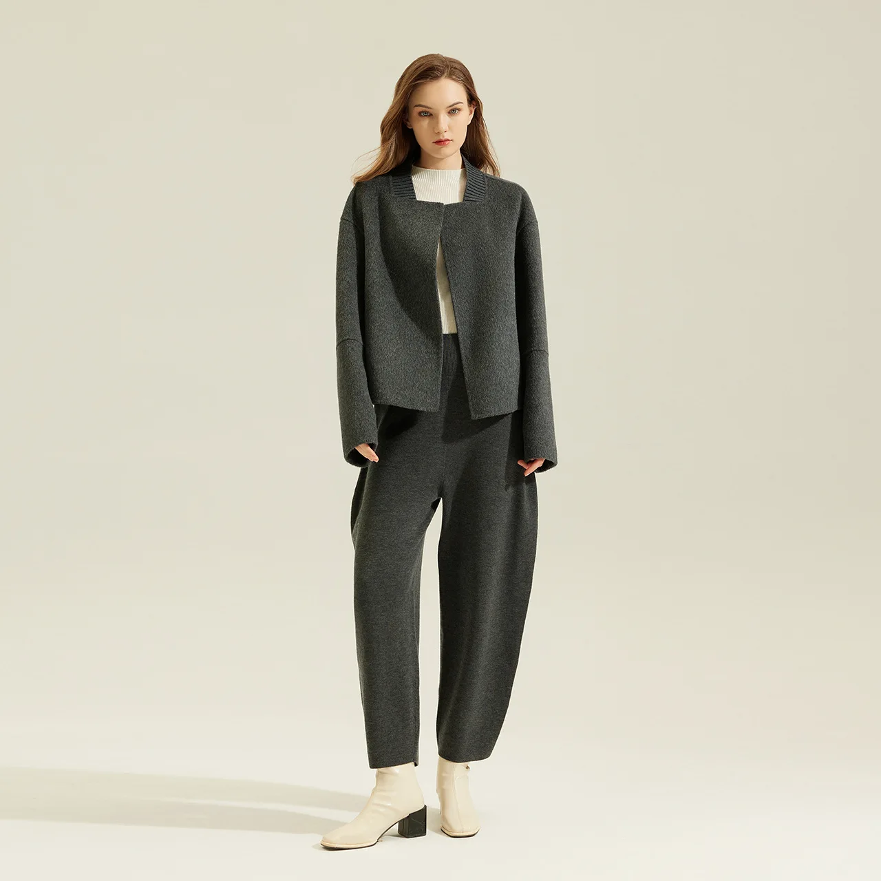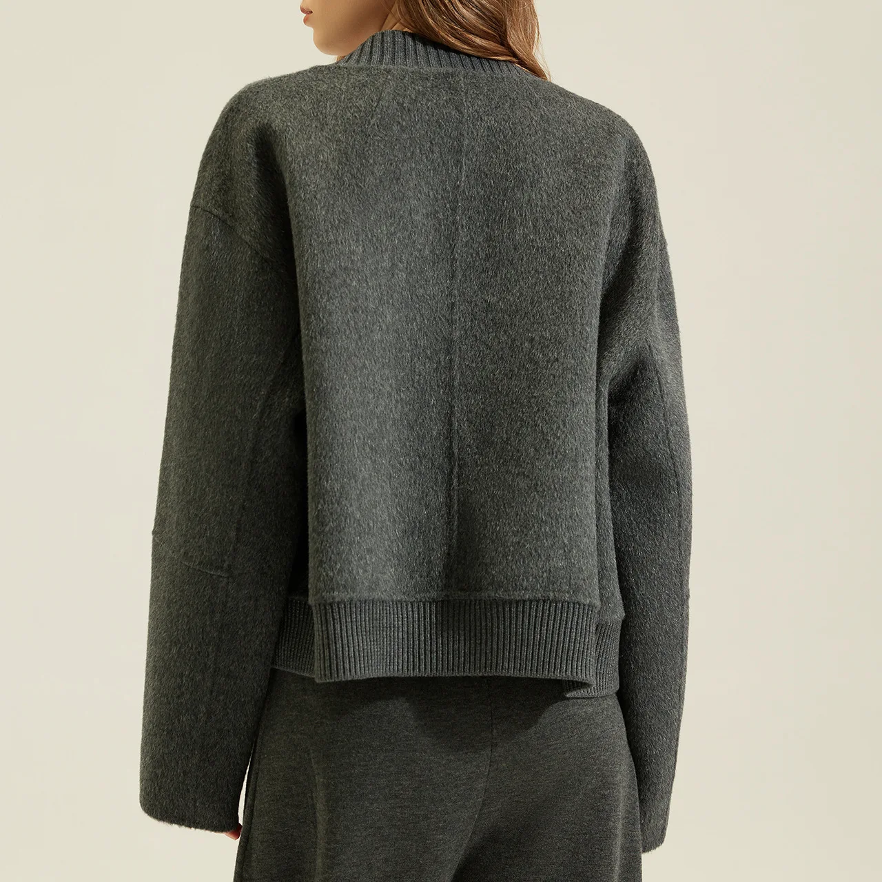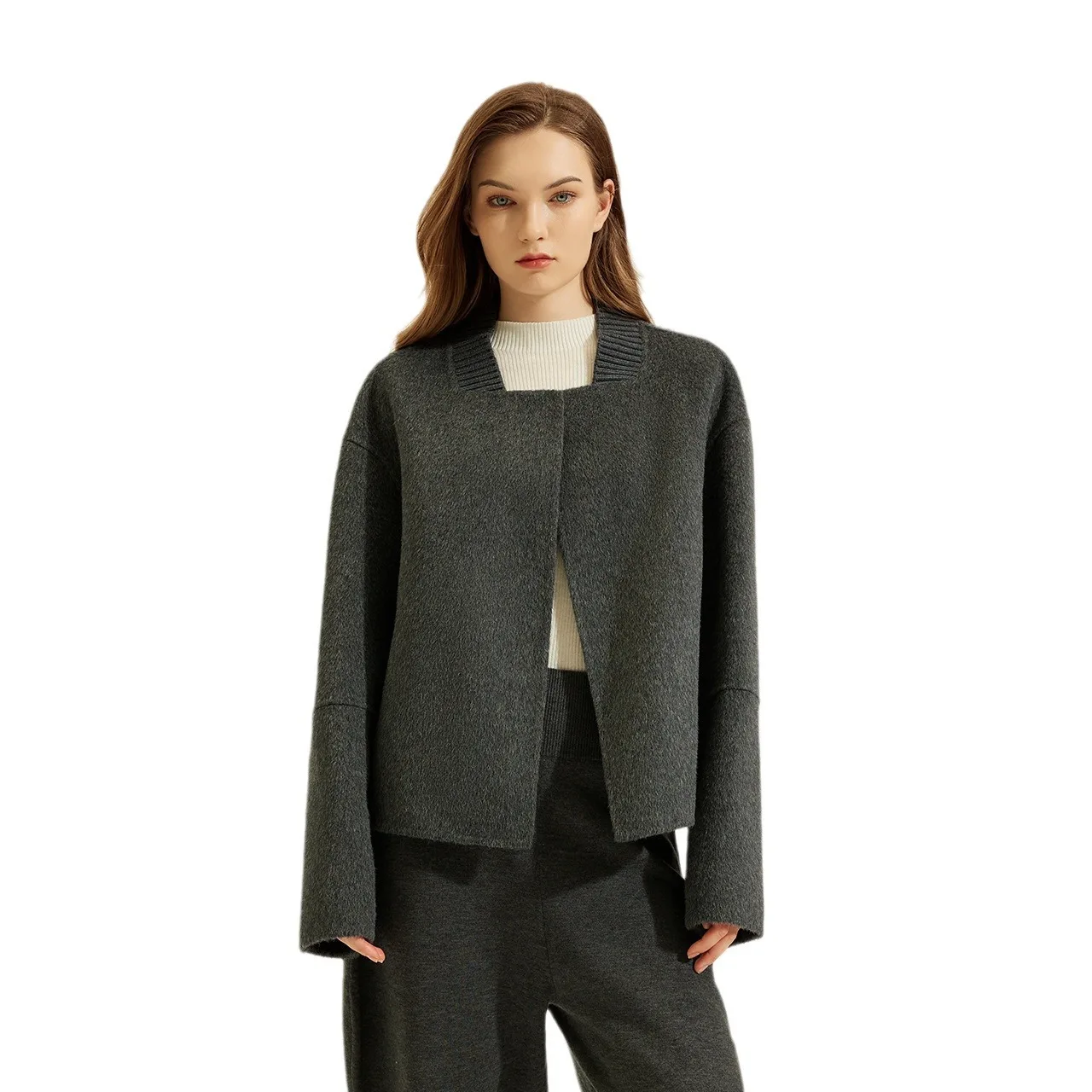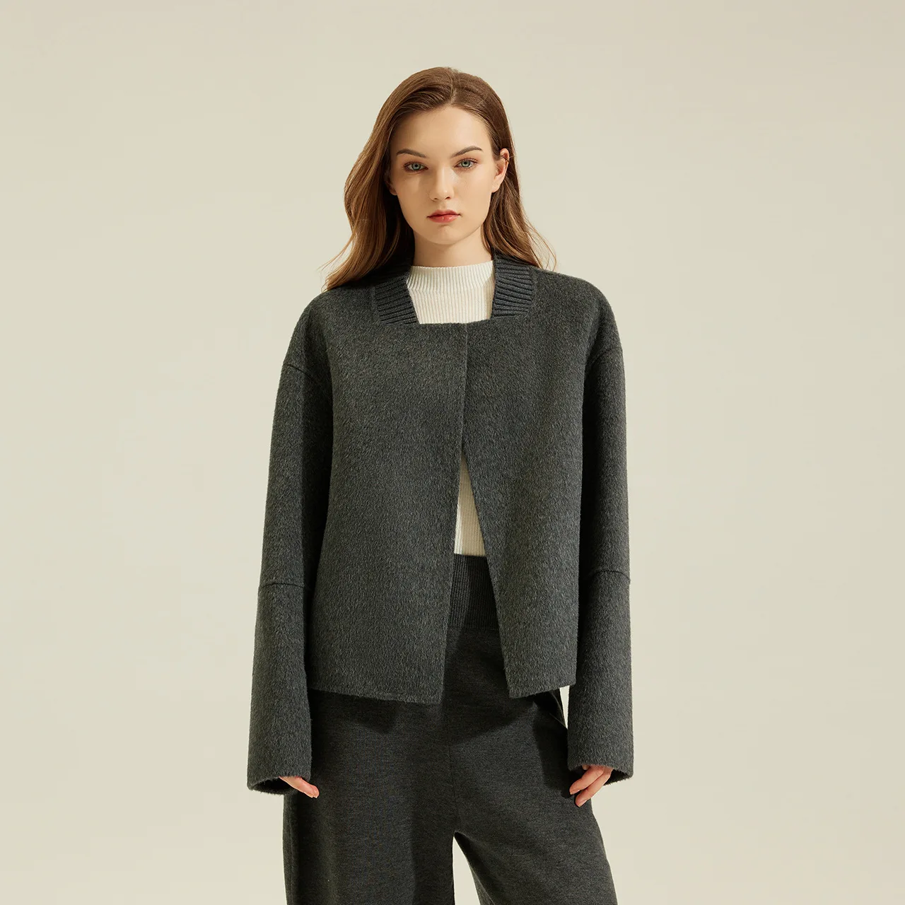 Designed as a long sleeve piece with a knit collar, this jacket gives you extra coverage and protection from chilly winds without feeling bulky. The double-faced woolen fabric adds an extra layer of thickness, keeping you snug and insulated whether you're out for a walk, running errands, or meeting friends for coffee. The knit collar adds a subtle, stylish touch that makes this jacket simple but elegant enough to pair with various outfits.