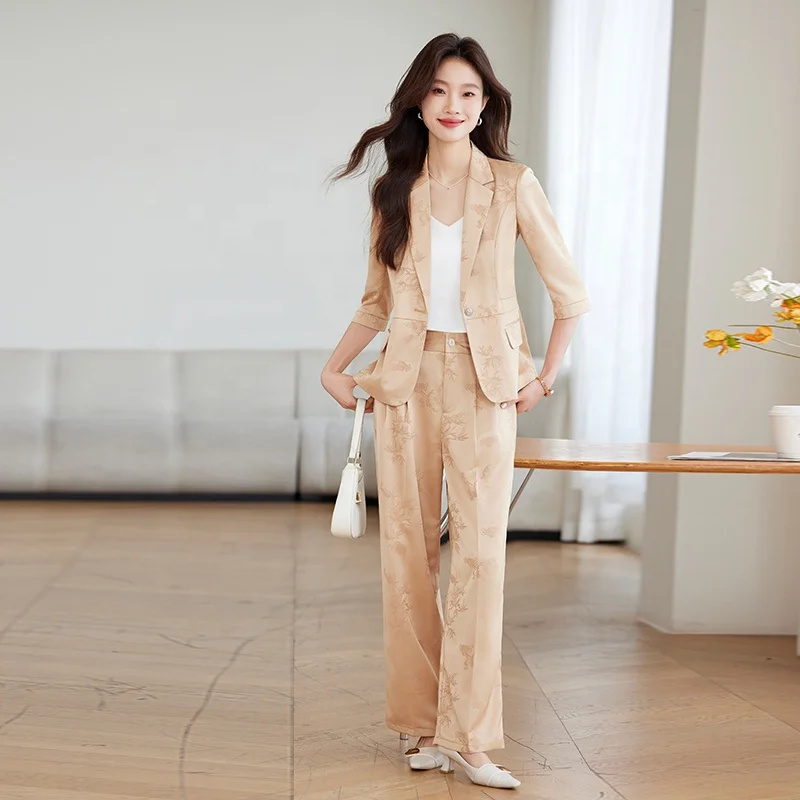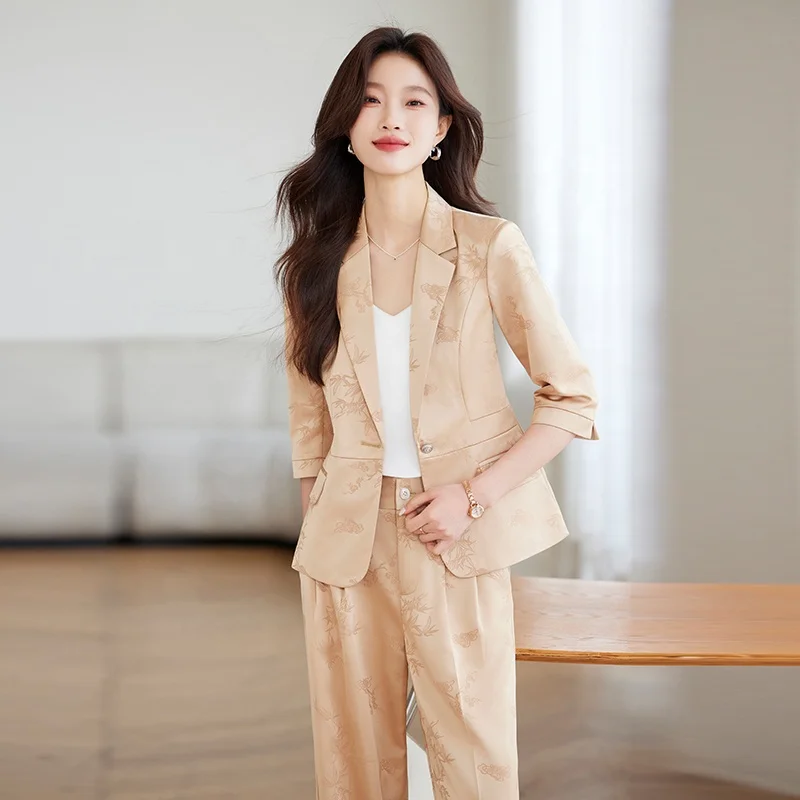 Introducing the AU Cloud Trading 2025 Spring Summer Collection – a high-quality women’s professional commuter suit jacket set designed with a unique Chinese national wind style. This collection perfectly blends modern professionalism with traditional elegance, making it an ideal choice for women who want to look confident and stylish during their busy workdays and beyond