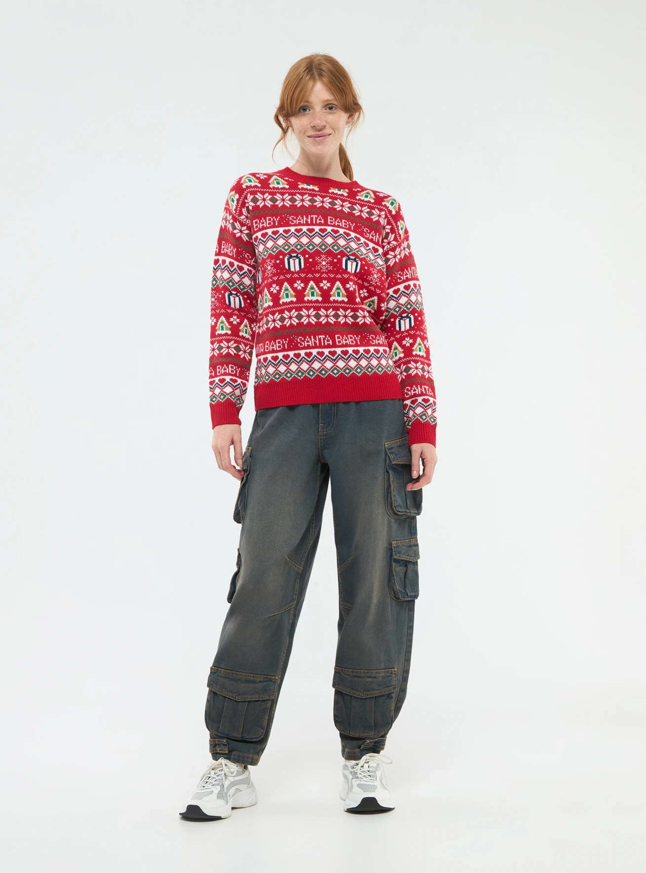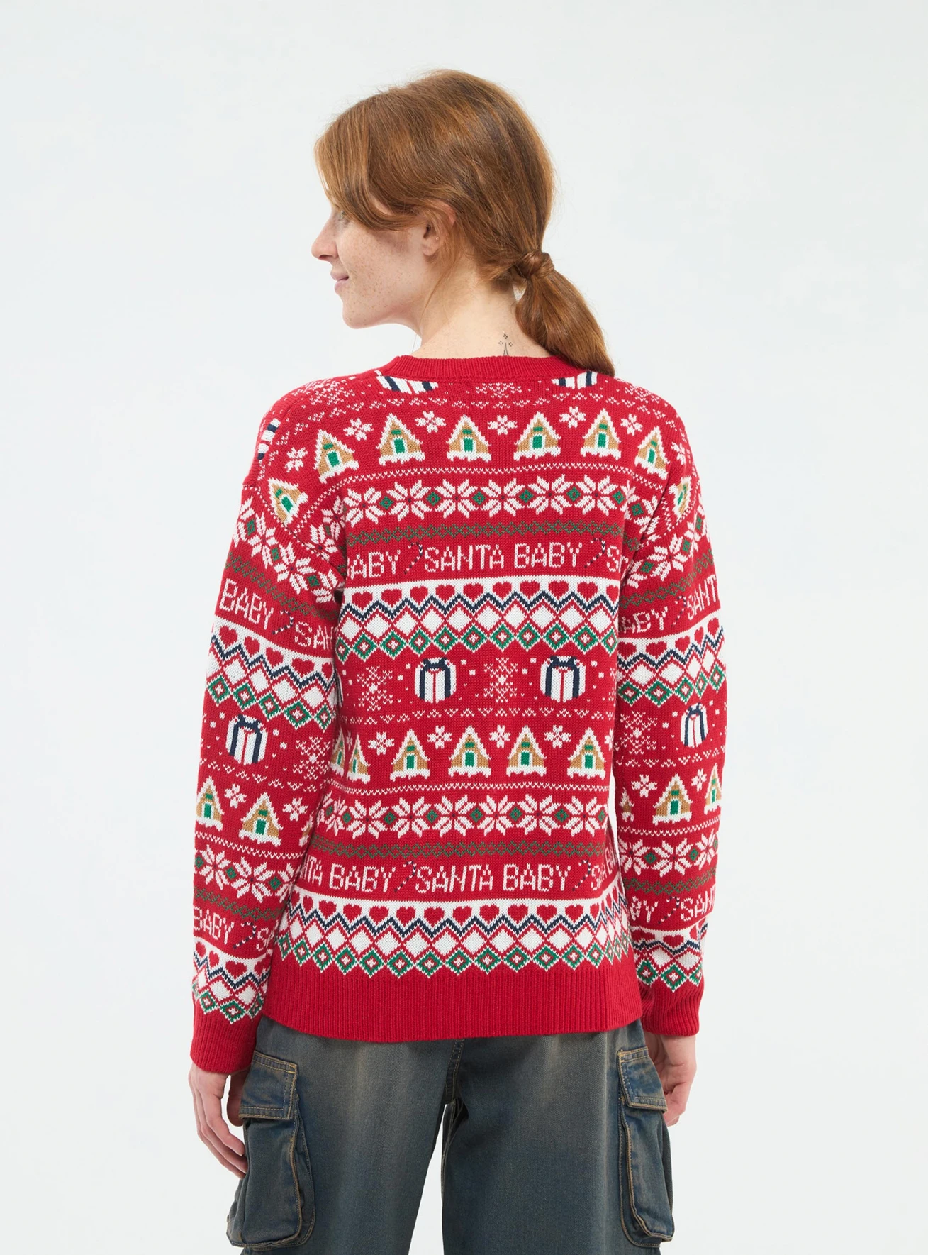 Made with care and attention to detail, this jumper features a unique Christmas jacquard pattern on the front. The classic holiday design brings a cheerful vibe to your outfit, making it ideal for casual outings, family gatherings, or holiday parties. Whether you're enjoying a cozy day at home or stepping out for a winter walk, this jumper combines comfort with festive style effortlessly.