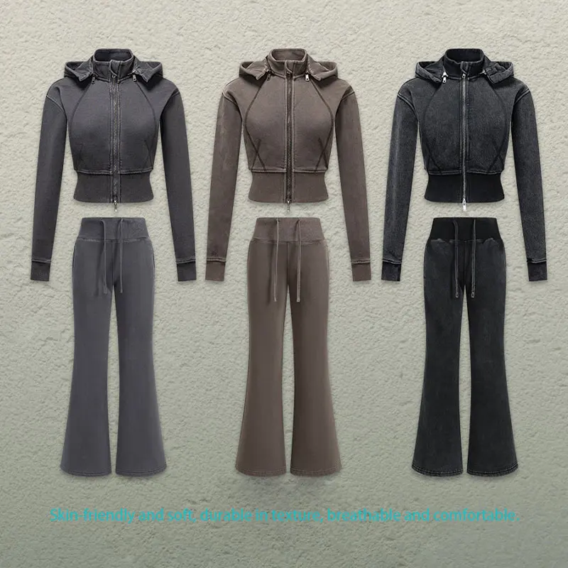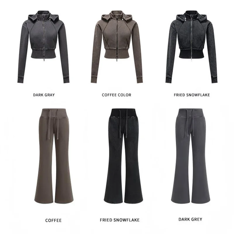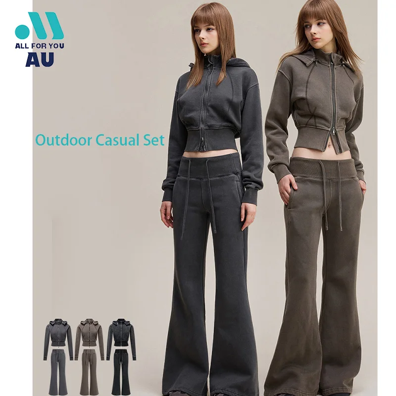 Introducing the AU Custom 2025 Fall Women's Two-Piece Set by AU Cloud Trading, a perfect blend of comfort and style for your everyday wardrobe. This set includes a long sleeve slim fit zip-up hoodie and matching casual pants, made from 100% pure cotton to keep you cozy and comfortable all day long