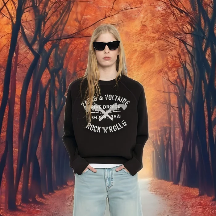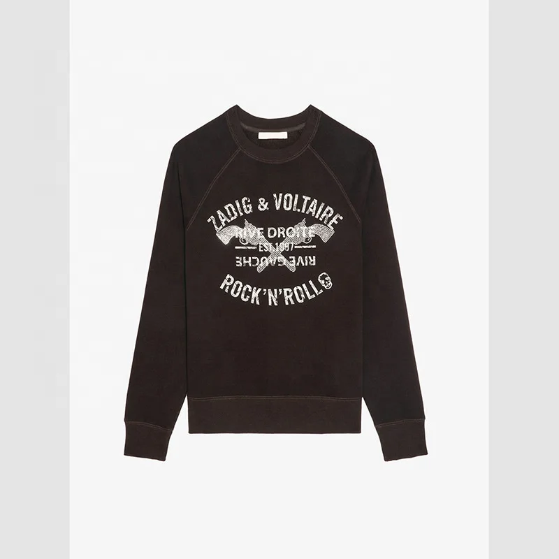 What makes this sweatshirt stand out is the eye-catching double gun rhinestone design paired with bold letter print detailing. The sparkling rhinestones add just the right touch of glamour without being over the top, making it easy to dress the sweatshirt up or down depending on the occasion. Whether you pair it with your favorite jeans, leggings, or a casual skirt, the unique print adds personality and a trendy edge.