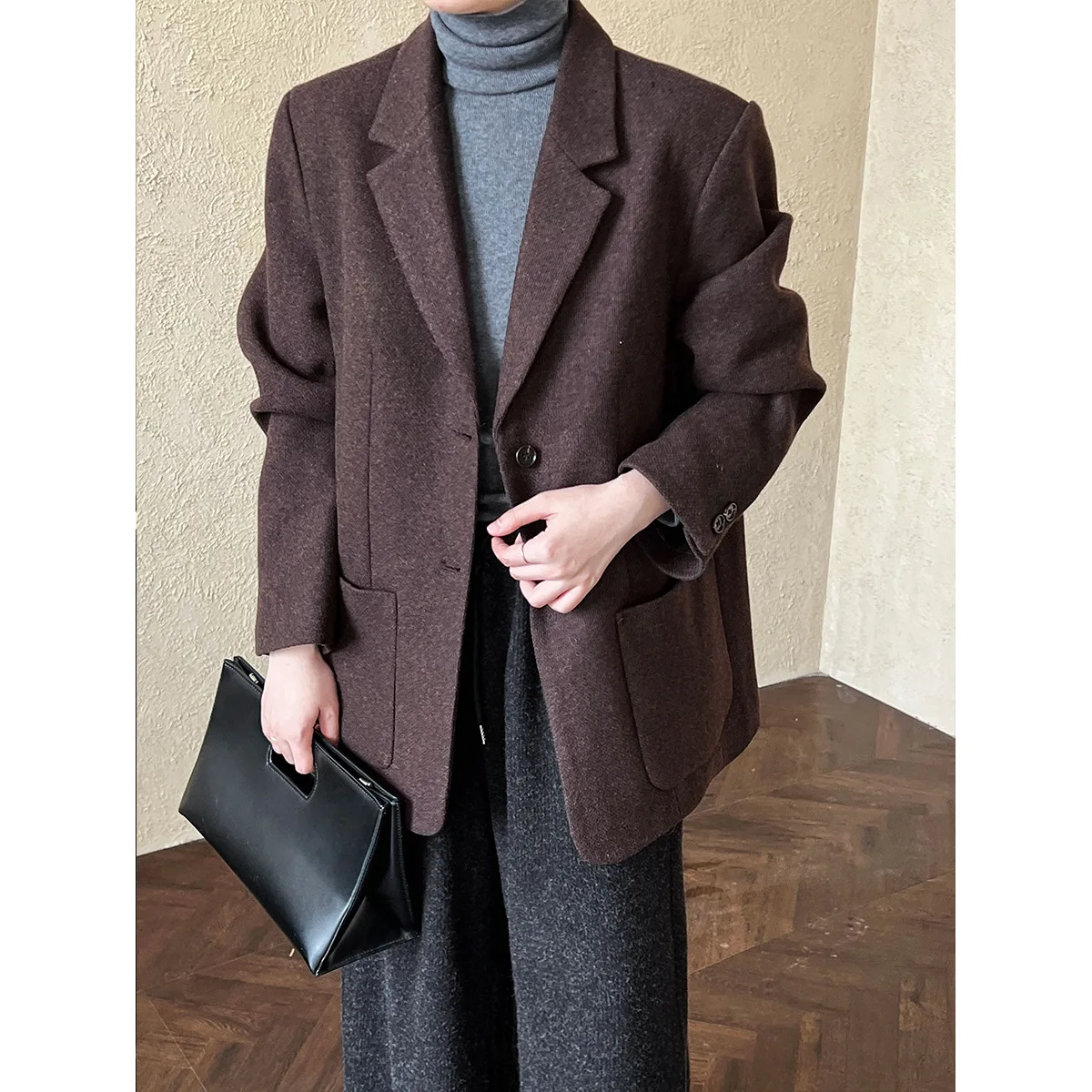 Designed with long sleeves, this blazer provides extra warmth and coverage against chilly weather. The single-button closure adds a classic touch while making it easy to wear and take off. The woven wool fabric not only looks nice but is also durable and breathable, ensuring the jacket lasts for seasons to come.