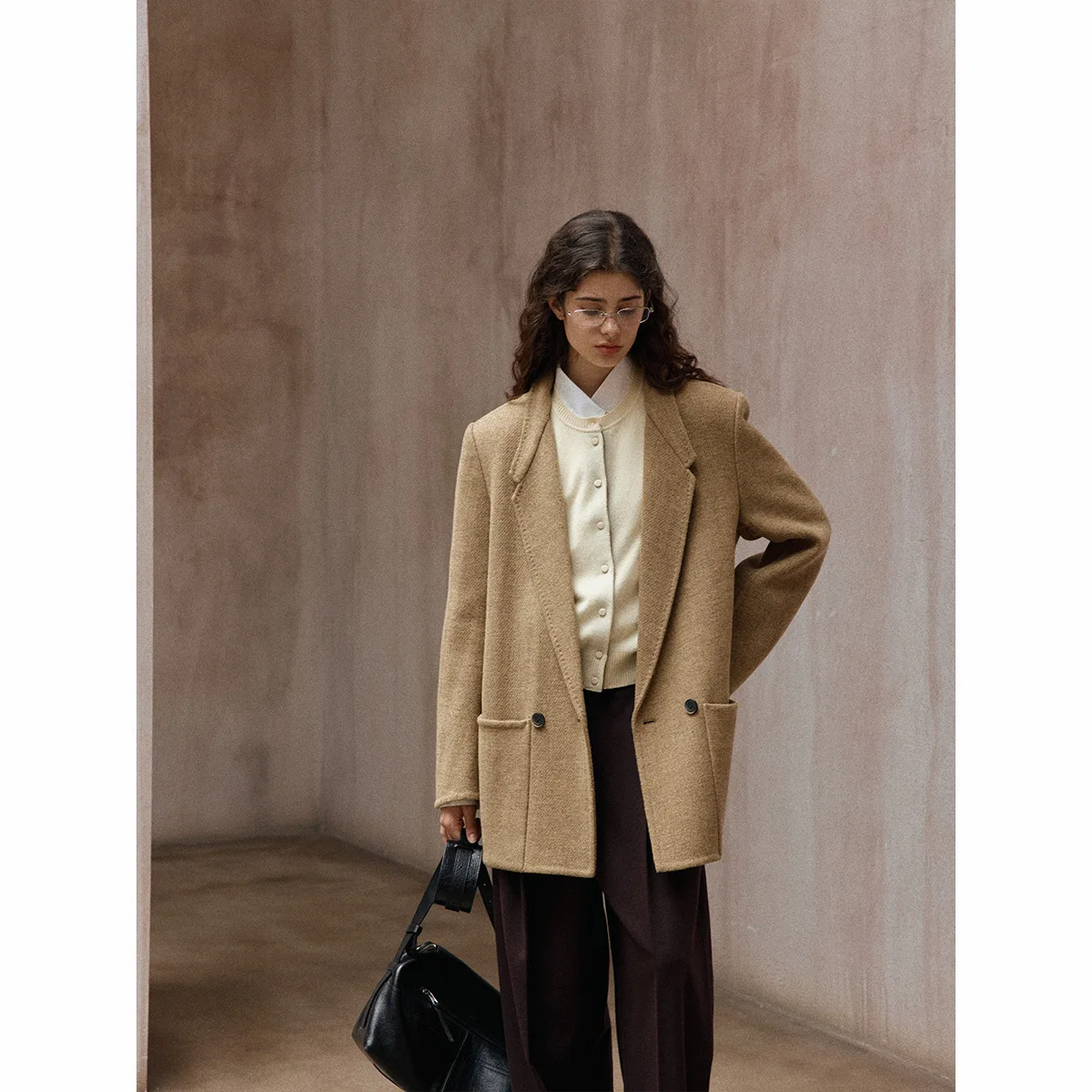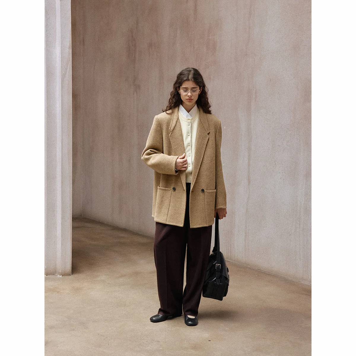 The design of the AU Cloud Trading Wool Coat is both modern and timeless. It comes with wide shoulders and a button blazer style, giving you a confident and professional look. The structured shoulders create a strong and stylish silhouette, while the simple button closure keeps the coat sleek and easy to wear. This is a coat that pairs well with both casual and formal outfits, making it versatile for numerous occasions.